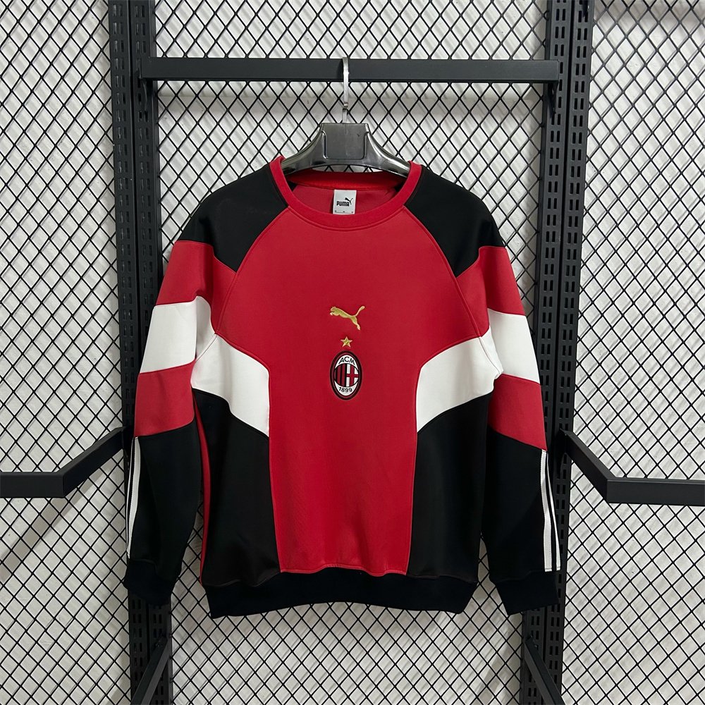 2025 AC Milan Red Black White Color Block Heavyweight Casual Long Sleeve Sweatshirt