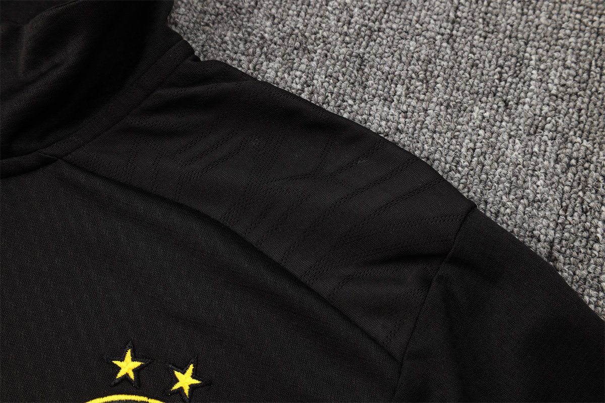 Introducing the Mens Borussia Dortmund Jacket + Pants Training Suit Black 2024/25, a must-have for any Dortmund supporter or football enthusiast. This sophisticated training suit boasts an impeccably sleek black design that reflects the club’s esteemed legacy while embracing modern trends. Crafted for optimal performance and comfort, this training suit is ideal for both on-field training sessions and off-field casual wear.