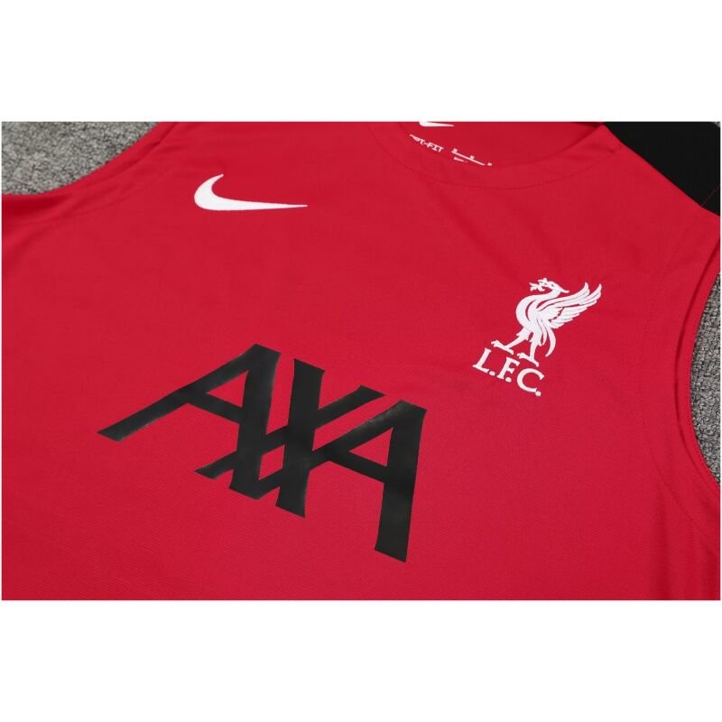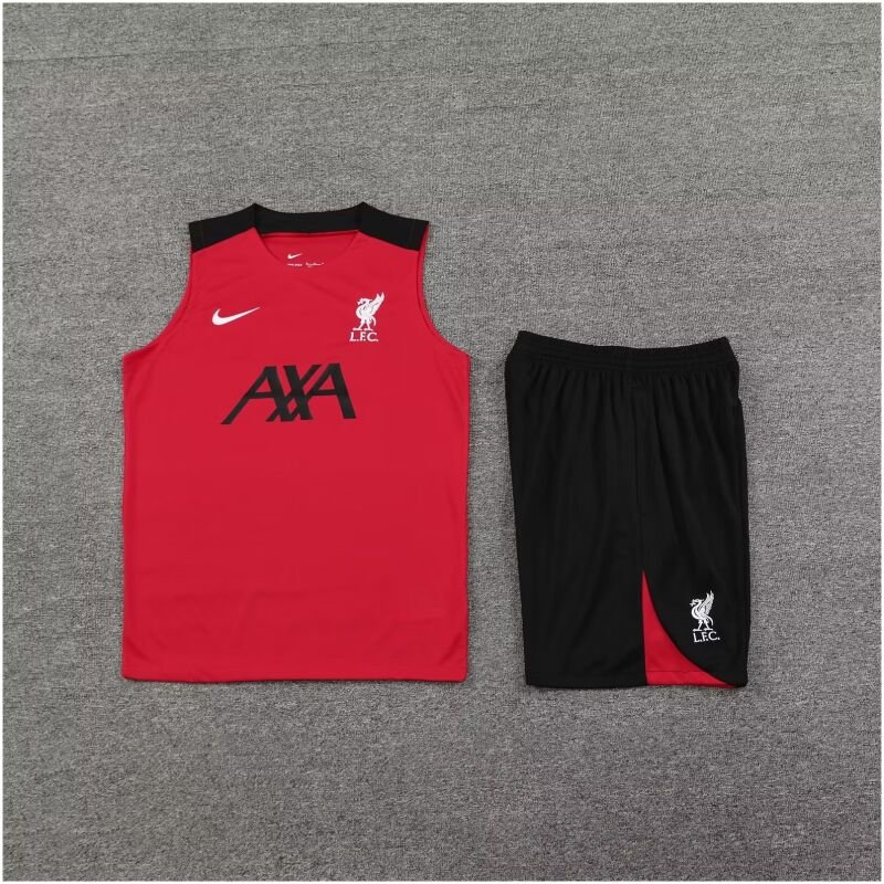 The Men’s Liverpool Singlet Suit features a sleek red design for the 2024/25 season, crafted from breathable, moisture-wicking fabric for optimal comfort and performance.