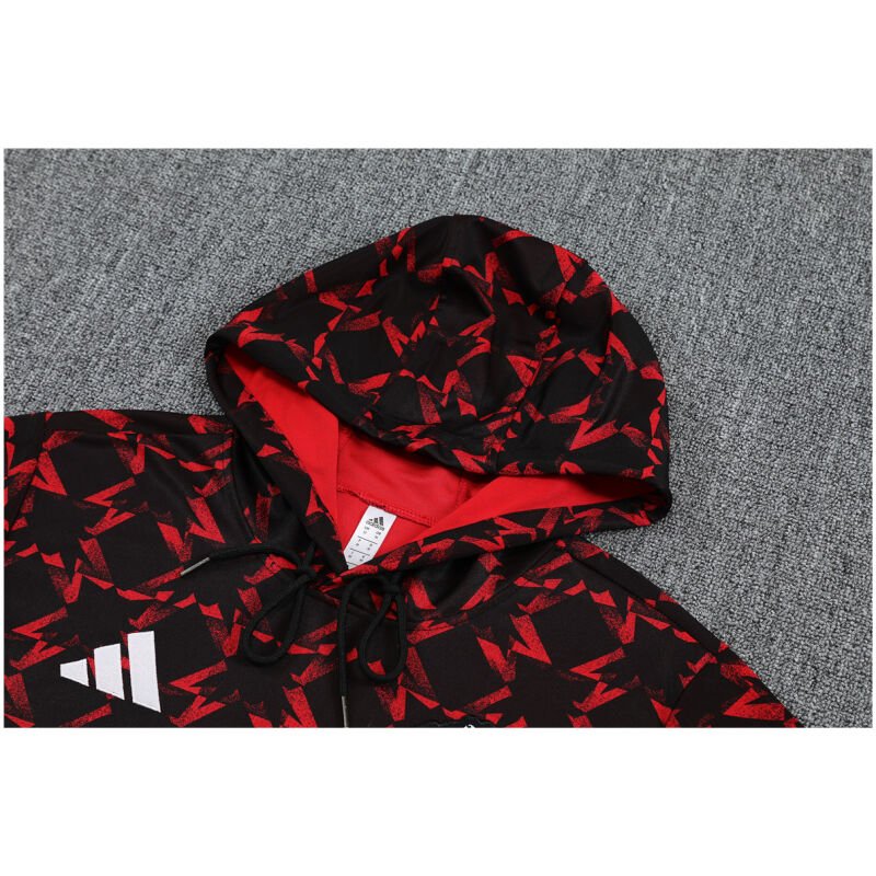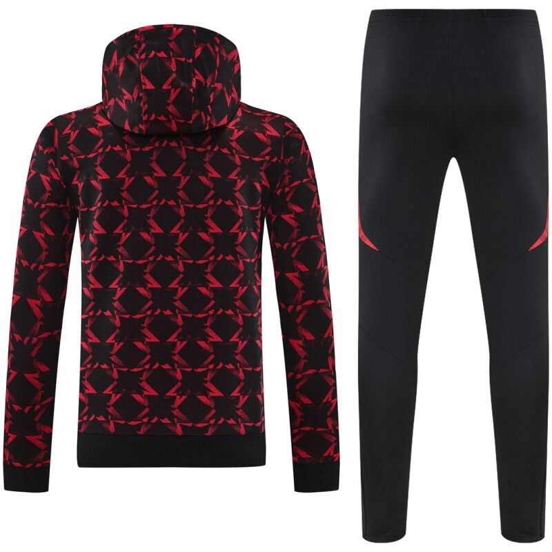 Manchester United, one of the most successful and storied clubs in the history of football, is well known for its passionate fanbase and glorious achievements on the pitch. This training suit is designed to embody the spirit of the club with its striking red and black color scheme, echoing the traditional colors of pride and victory.