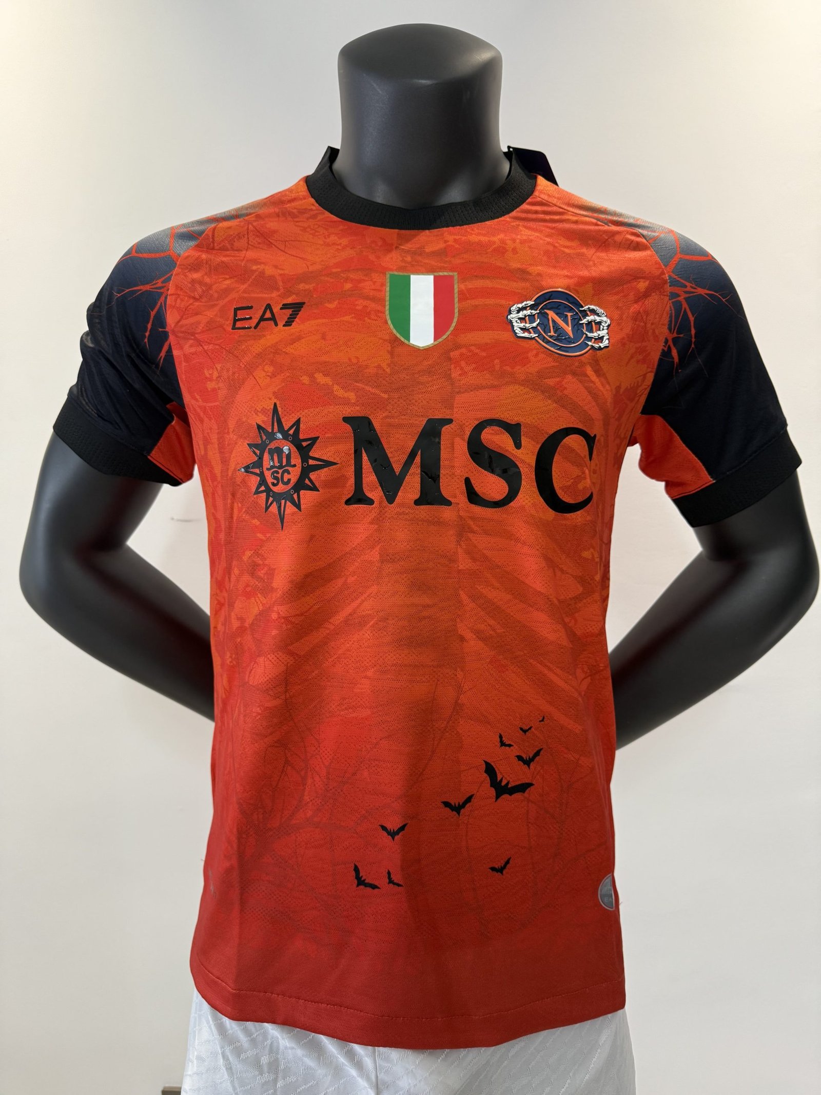 The 2025/26 Men’s Napoli Halloween Orange Jersey features a bold, vibrant orange design with unique spooky detailing, perfect for fans and collectors.